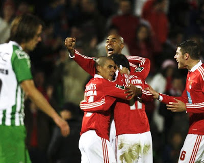 Moreira teve oportunidade de voltar à baliza, confesso que não entendo a lógica de rotação dos nossos guarda redes, e de resto a equipa voltou a ser a habitual embora tenha aparecido Carlos Martins no lugar de Ramires. Até ao intervalo o jogo esteve equilibrado mas o Benfica criou oportunidades de golo e viu-se atitude séria na abordagem ao jogo.