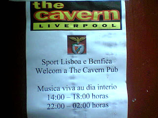 Emocionante estar à porta do Cavern! Claro que já não é o mítico local onde os Beatles tocaram 292 vezes, mas há a magia das fotos expostas. Um inglês canta no palco temas dos fab four, isto até o bar ser tomado pelos imensos benfiquistas que iam invadindo o centro de Liverpool. Em pouco tempo os cânticos de apoio ao Glorioso ecoavam pelo Cavern, isto com adeptos do Liverpool rendidos à nossa fé.