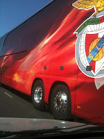Saí para ir almoçar e em plena 2ª Circular vejo à minha frente o belo autocarro do Benfica. A equipa acabada de chegar ao aeroporto de Lisboa e já em caminho para a Luz. Os rapazes da Luz que me fizeram perder umas horas de sono na última noite para ver o jogo de Toronto. Obviamente que apitei e acenei ao passar ao lado deles. Começo a gostar desta época. A última vez que estas coisas aconteceram acabámos campeões.