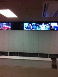 O ponto alto da visita é a entrada nos balneários onde fui surpreendido por um mosaico de fotos de jogadores que iam mudando em jeito de moldura digital. Os maiores craques das equipas que já visitaram o Camp Nou estão lá. Todos! Até o nosso Rui Costa como se pode ver na fotografia acima. Mais Benfica em Barcelona.
