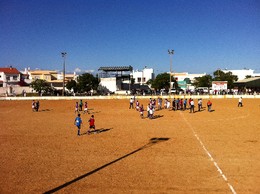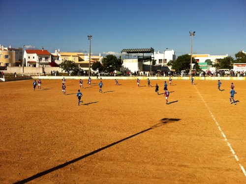 Regresso ao Algarve em busca das raízes do futebol. Depois de ter ido conhecer o Estádio do Silves há uns meses desta vez aceitei o repto de dois companheiros benfiquistas e algarvios que dominam o futebol das divisões inferiores da sua zona. Para sábado à tarde o programa mais aliciante era uma deslocação a Moncarapacho para assistir a uma partida vital na luta pela permanência. As equipas de Moncarapacho, perto de Olhão para quem não conhece, e de Aljezur corriam o sério risco de descerem à 2ª Divisão.
