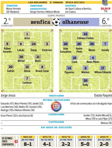 Chegar, ver, marcar, convencer, marcar, prometer muito e passar ao lado da goleada. Foi assim a primeira parte do Benfica que começou este jogo com o Olhanense a saber que tinha de garantir os 3 pontos para continuar na frente do campeonato com o Porto e ainda deixar o Braga um pouco mais para trás.