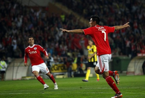 A aposta hoje passou por Ruben na direita, Matic ao lado Witsel no meio, Cardozo e Saviola de volta ao onze, apoiados por Bruno César e Nolito. Só na segunda parte entrou Gaitán, Aimar e mais tarde Javi.