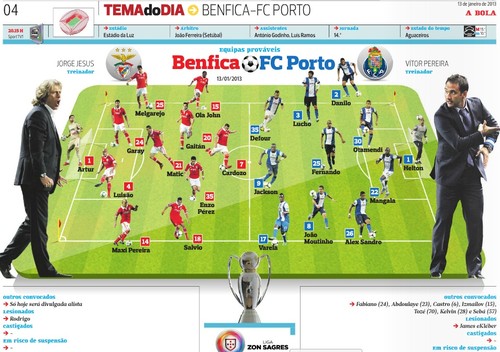 Esperava mais do Benfica no clássico de hoje. Tenho gostado dos jogos que temos vindo a fazer esta temporada e sentia que desta vez nos íamos impor em casa com o nosso futebol ofensivo e por isso nada a dizer à aposta de Jesus em Lima e Cardozo de início. Sem Rodrigo e apenas com Kardec no banco era importante ganhar vantagem cedo para depois se gerir a equipa. Aconteceu tudo ao contrário. Em pouco mais de um quarto de hora o jogo teve 4 golos e sempre com o Porto em vantagem. Elogios para o Benfica que soube sempre responder à altura e voltar ao jogo mesmo depois de uma estranha oferta de Artur que deixou o resultado num perigoso 1-2.