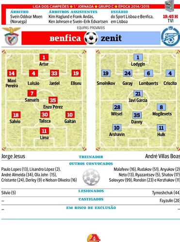 O Zenit anda a investir sucessivamente nas últimas temporadas para chegar cada vez mais longe na Champions. Agora comandados por Villas-Boas, a equipa de St. Petersburg apresenta uma equipa reforçada por Shatov, vindo do Anzhi e o central Garay que se junta a Witsel, Javi Garcia, Luís Neto e Hulk, todos com experiência de Benfica ou Liga portuguesa. Com Danny como maestro e Rondon como finalizador, o Zenit apresenta argumentos de peso. Contam com o factor casa para resolver as suas contas e podem pontuar nas suas deslocações.