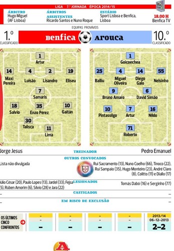 Médios: André Almeida, Enzo Perez, Gaitán, Salvio, Talisca, Ola John, Samaris, Pizzi
