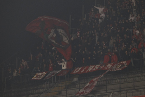 Só para que fique uma ideia da maneira como se tratam os adeptos que pagam para ver um jogo da sua equipa no meio destas condições miseráveis fica a imagem da saída do estádio. Uma bancada inteira a ser encaminhada para duas miseras escadarias numa das pontas da bancada. Miseráveis!