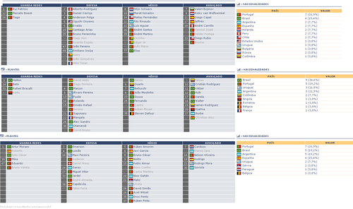 os quadros que ilustram este texto mostram a composição dos planteis dos três principais clubes do país, o glorioso, o corrupto e o outro.