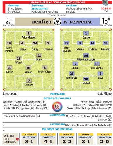 Benfica - Paços de Ferreira J.G. 01.10.11 Tags:lançamento de jogoliga zon sagres link do post favorito Mais para ler