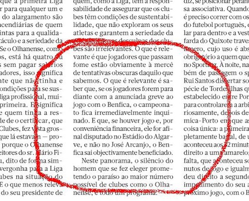 Mas o que é mesmo relevante, Miguel, é sabermos onde é que o Olhanense recebeu a tua equipa presidida por uma figura que devia estar a trocar poesias com o Carlos Cruz a esta hora.