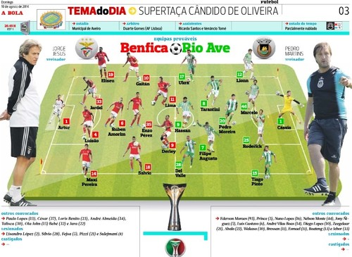 Depois de uma pré temporada tão intensa quanto preocupante, o Benfica apresentou-se para o jogo inaugural da época com um 11 em que apenas Eliseu e Talisca eram novidade. O Rio Ave tinha mais novidades na equipa e um novo treinador em relação ao que vimos no Jamor.