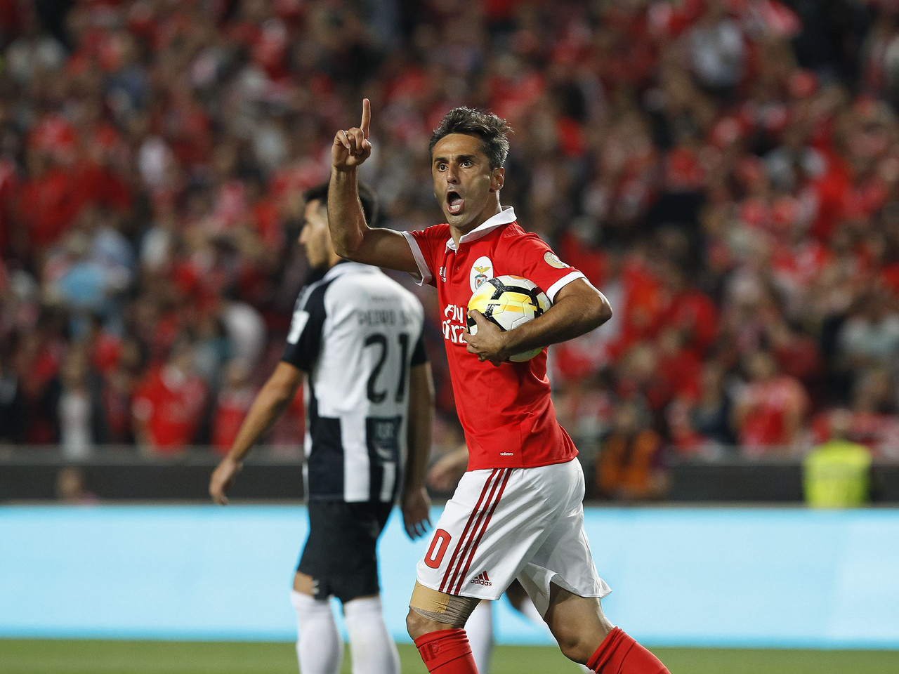 Felizmente, a reacção ao golo sofrido parecia terminar com a apatia geral. Penalti sobre Salvio, respectiva expulsão de Hackman e golo de Jonas. Dezoito minutos depois, quando o desespero nas bancadas já passava para dentro de campo, André Almeida tira da manga um número nunca visto, remate tenso com corte na bola que a levou a efectuar um trajecto tão invulgar quanto lindo. Só parou dentro da baliza de Ricardo Ferreira. Nem me interessa se foi intencional, se foi sem querer, se foi sorte. Azar não foi, de certeza.