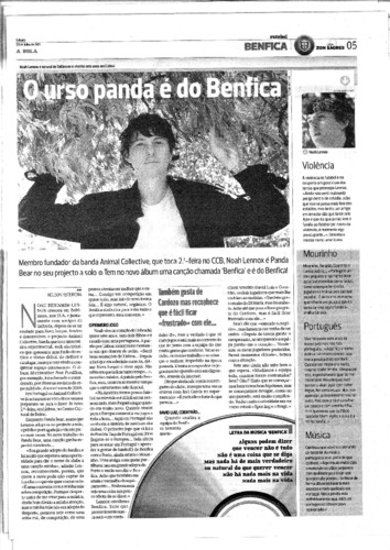 Panda Bear, dos Animal Collective (que assinaram o melhor disco de 2009 para a maioria da imprensa musical) , é lisboeta e benfiquista adoptivo. Na Luz, Gonçalo F. Santos fotografou-o. Rodrigo Nogueira falou. Tudo para ler na a revista Timeout. Fica aqui o destaque:
